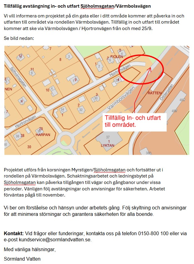 Tillfällig avstängning in- och utfart Sjöholmsgatan/Värmbolsvägen 20250925